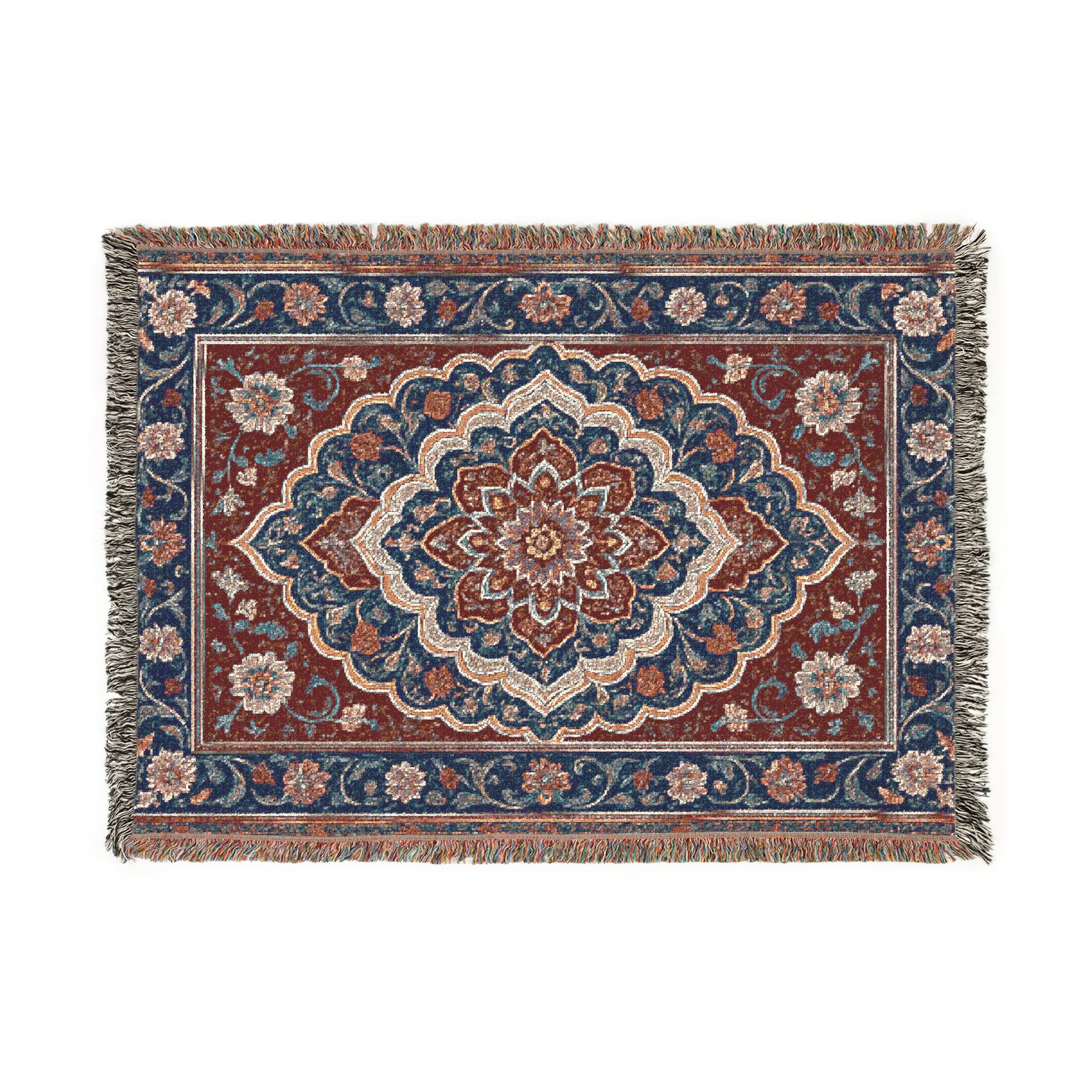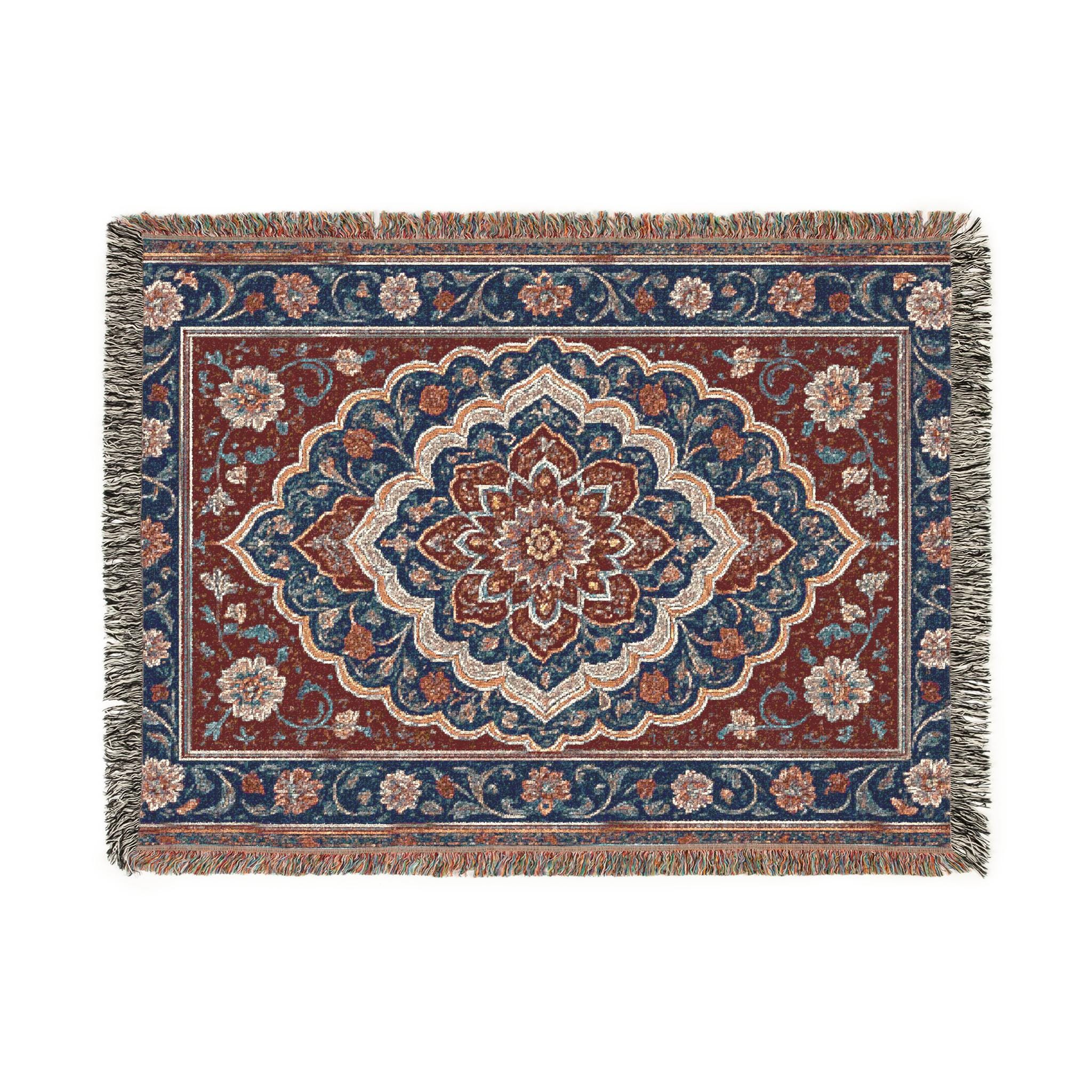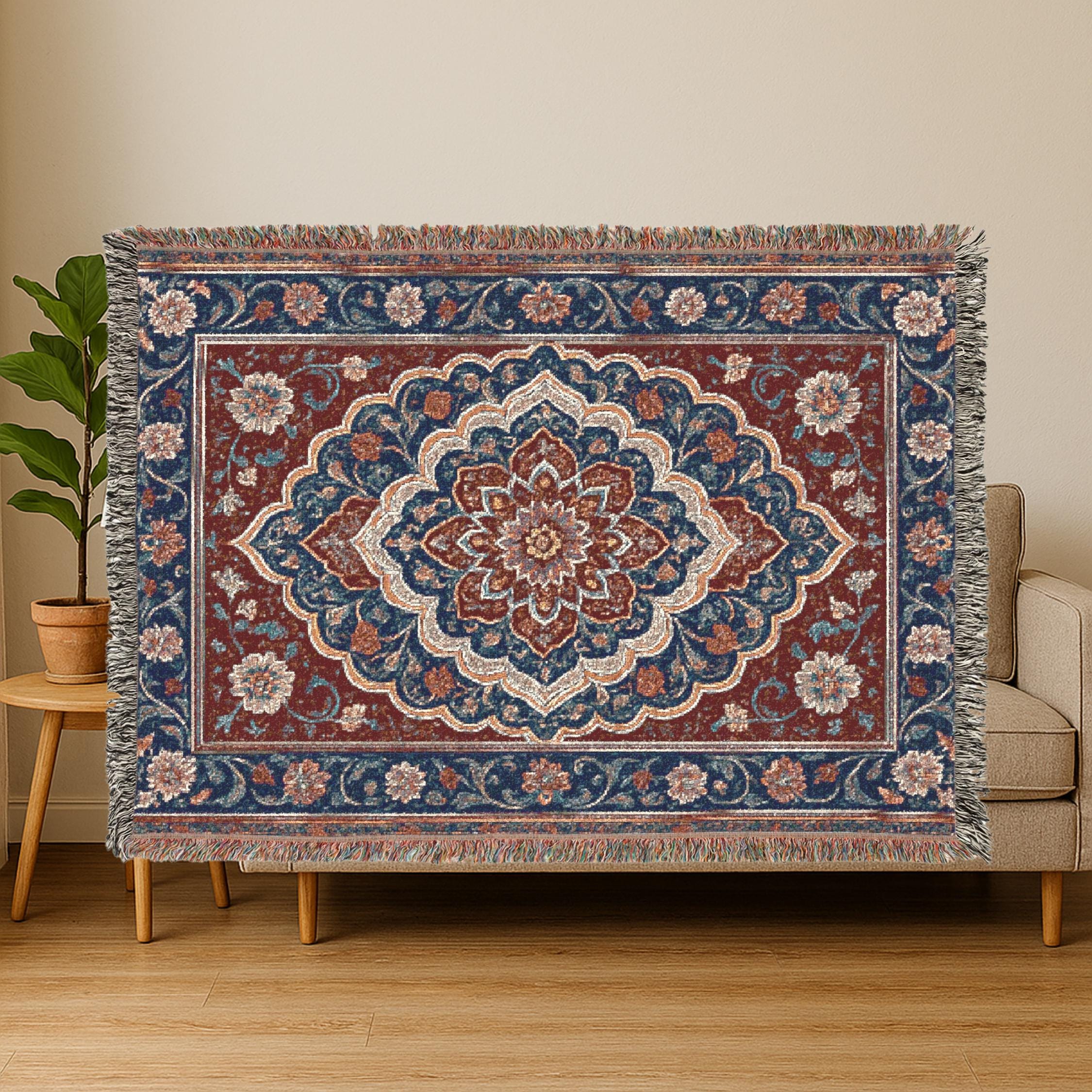 Featuring intricate Persian-inspired graphic designs and vintage/abstract patterns, these woven blankets make a bold statement—whether displayed on your wall as décor or draped over your couch for a cozy touch. The design reflects the beauty of Persian artistry, showcasing detailed motifs and timeless patterns that add sophistication and cultural depth to any space.